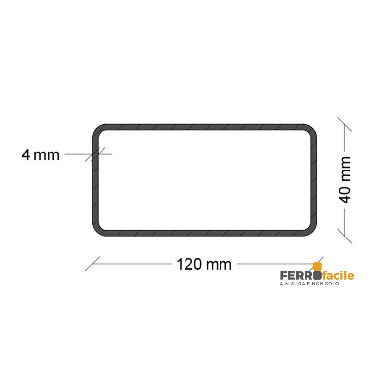 FERRO TUBOLARE RETTANGOLO 120X40X4 MM