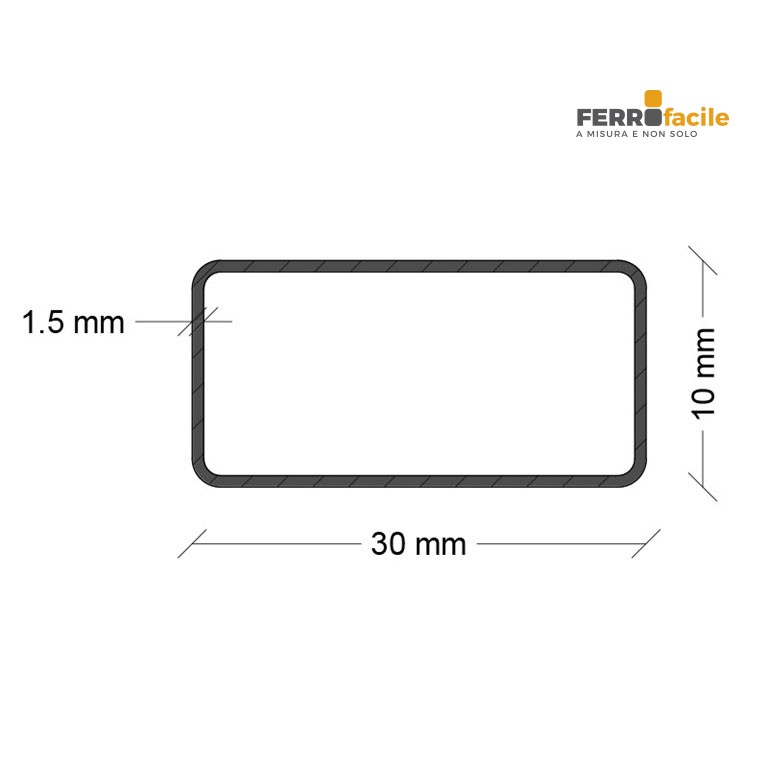 FERRO TUBOLARE RETTANGOLO 30X10X1,5 MM