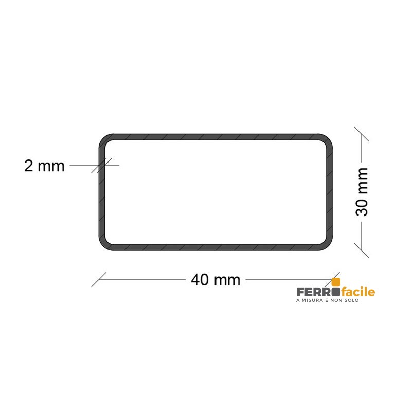INOX AISI 304 TUBOLARE RETTANGOLARE 40X30X2 MM GREZZO